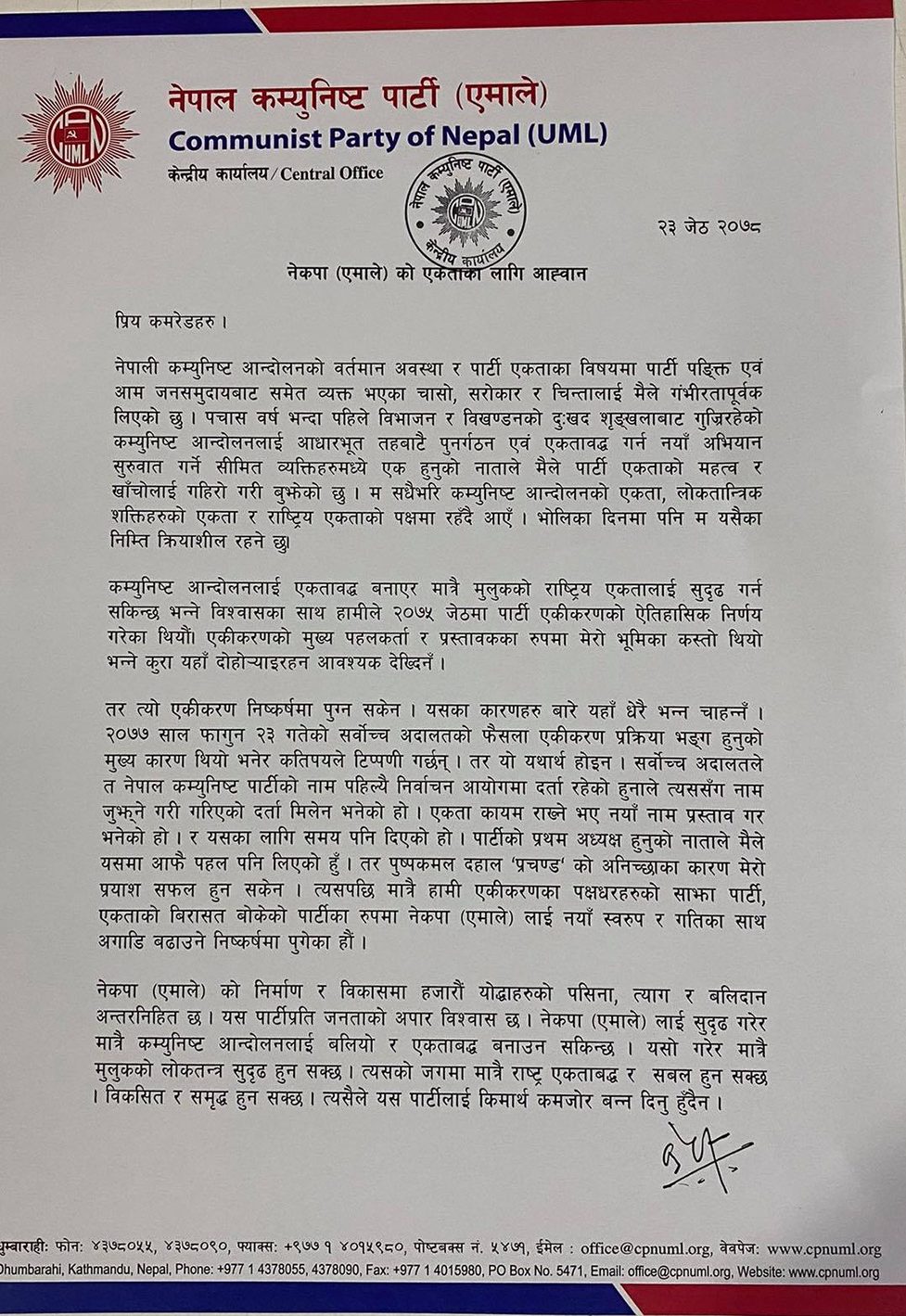 पूर्व प्रधानमन्त्री नेपालविरुद्ध भ्रष्टाचार मुद्दा दायर भएको पत्र संसद् सचिवालयमा